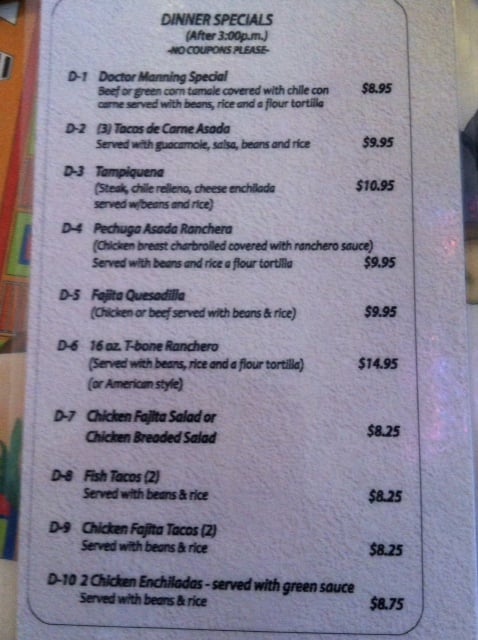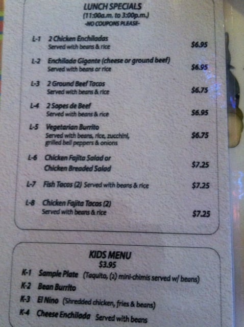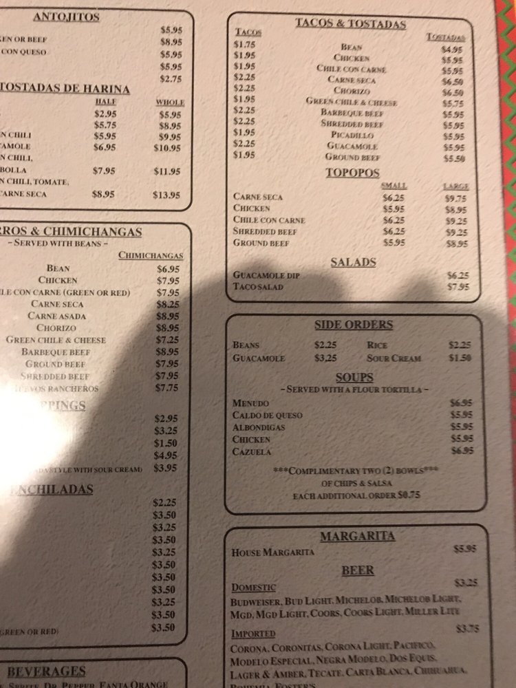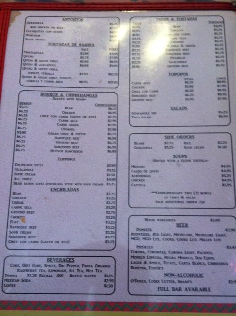 1 beef tamale, green or red chile con carne, beans, rice and a flour tortilla.